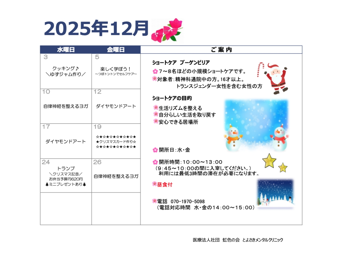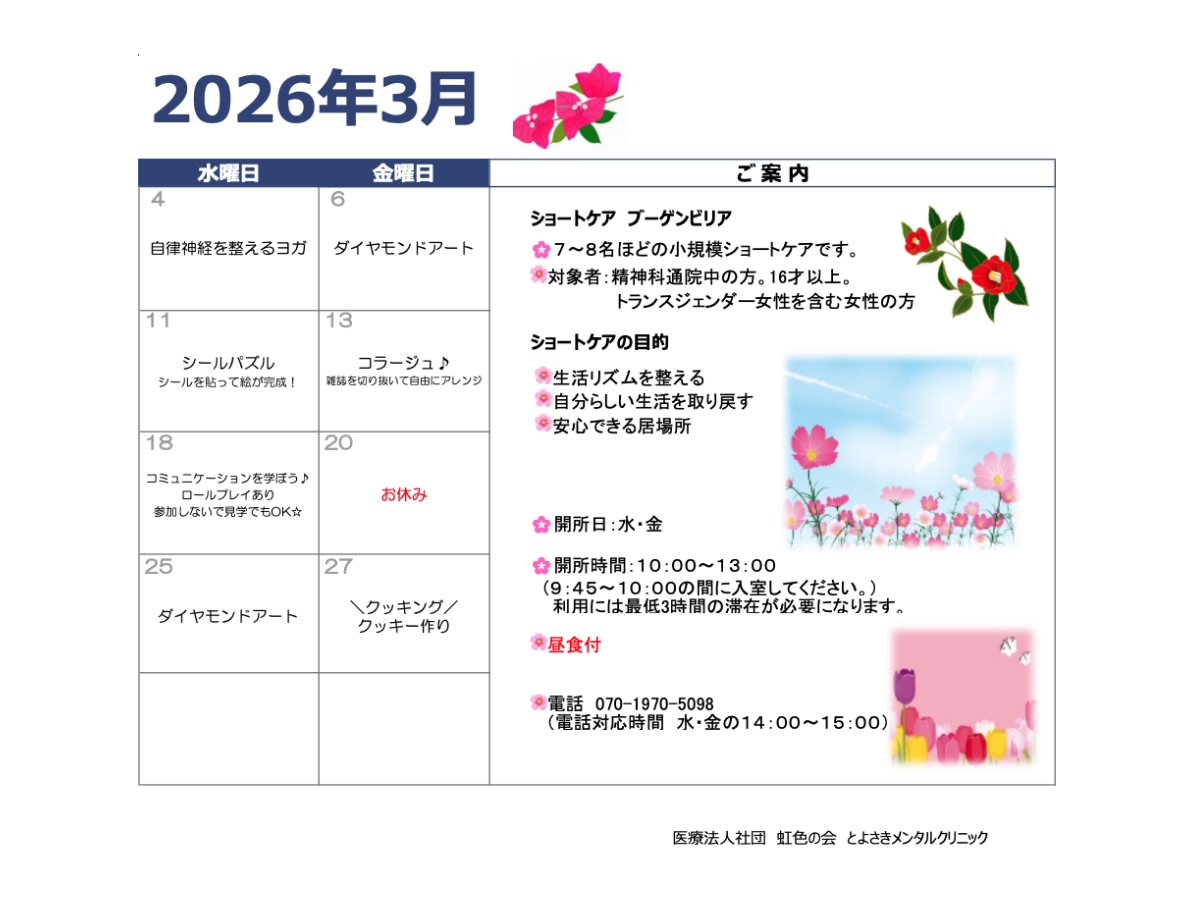 - 精神科ショートケア「ブーゲンビリア」